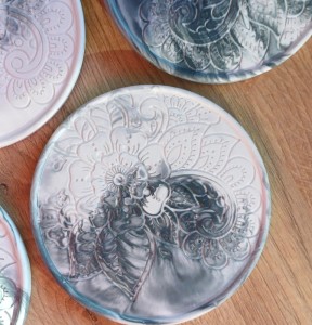 Podstawka biało-szara gipsowa pod świece mała wzór (10 cm)