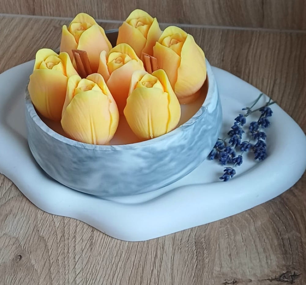 Świeca sojowa w gipsie żółte TULIPANY