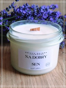 Świeca sojowa NA DOBRY SEN ręcznie wykonana w mojej małej pracowni.